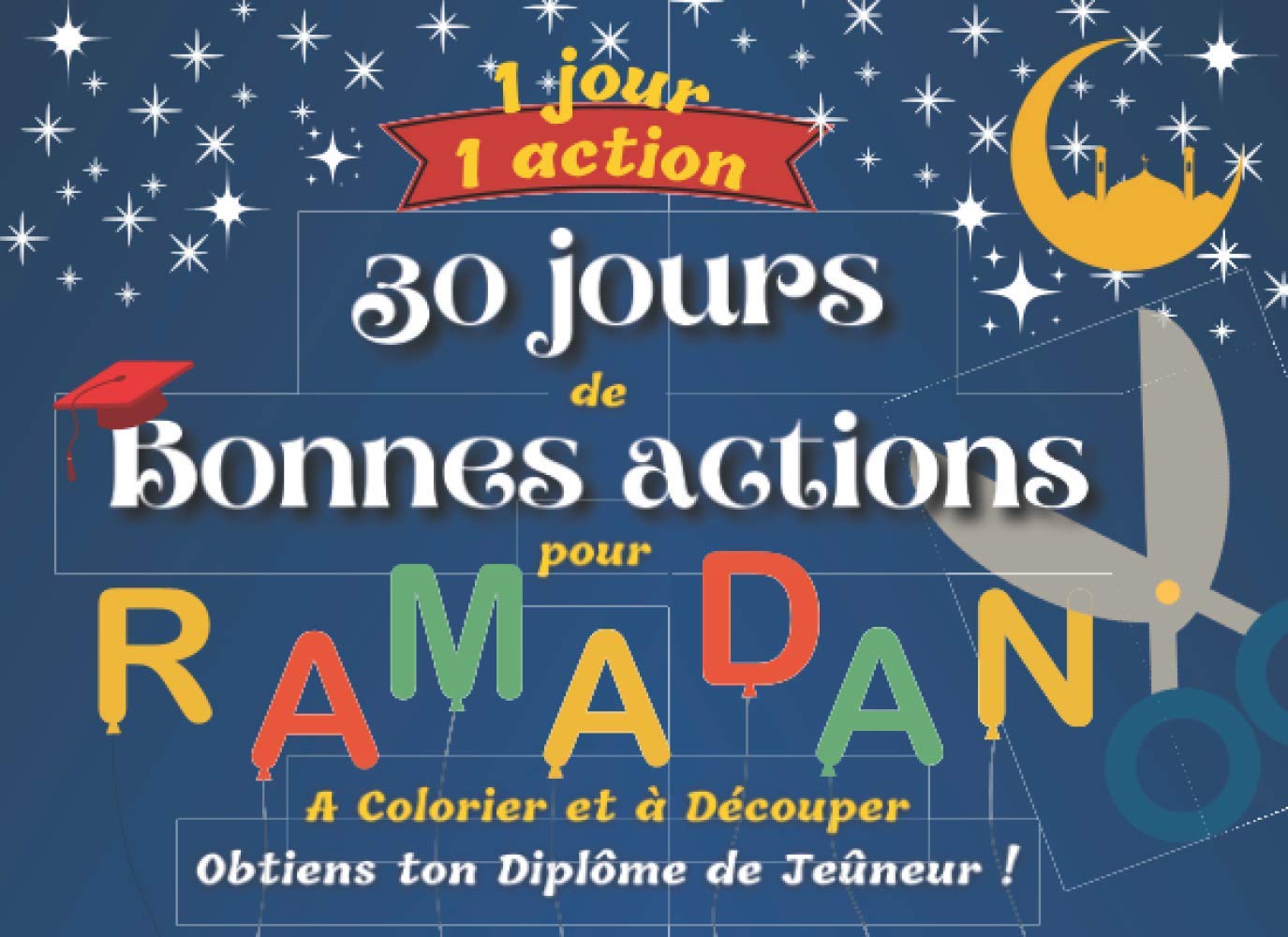 1 Jour, 1 Action – 30 Jours de Bonnes Actions pour RAMADAN – A Colorier et à Découper – Obtiens ton Diplôme de Jeûneur !: + de 60 cartes à colorier et … – Diplômes pour les petits Jeûneurs