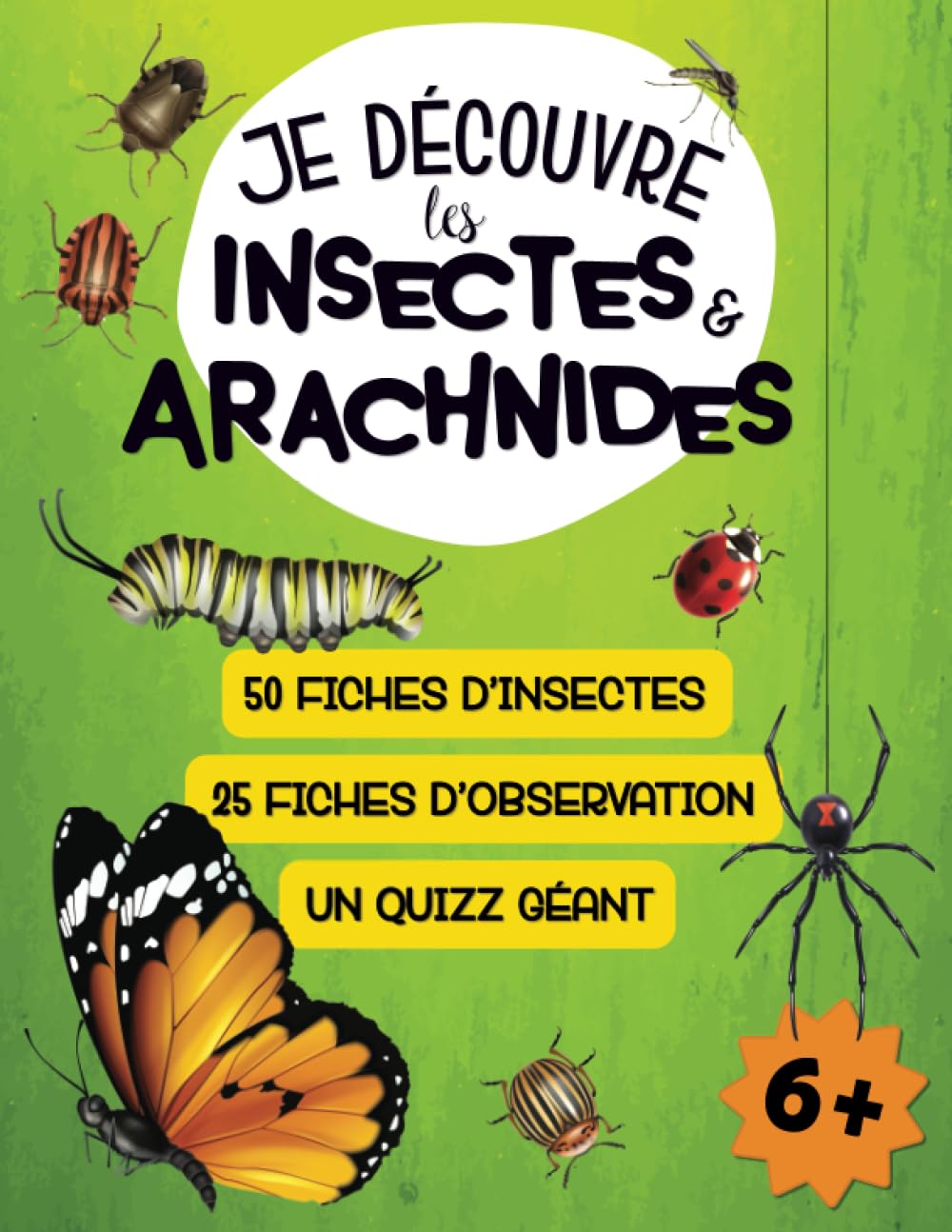 Voici ce qu’il trouvera dans ce livre : 50 INSECTES ET ARACHNIDES : des fiches illustrées pour découvrir ces petites bêtes : taille, durée de vie, alimentation, reproduction, habitat… 250 QUESTIONS : chaque insecte est accompagné de son propre questionnaire, permettant à votre enfant de tester ses acquis. 25 FICHES D’OBSERVATION : partez avec lui à la recherche des petites bêtes qui peuplent la nature. Grâce à ces fiches à compléter, il pourra noter toutes ses observations !